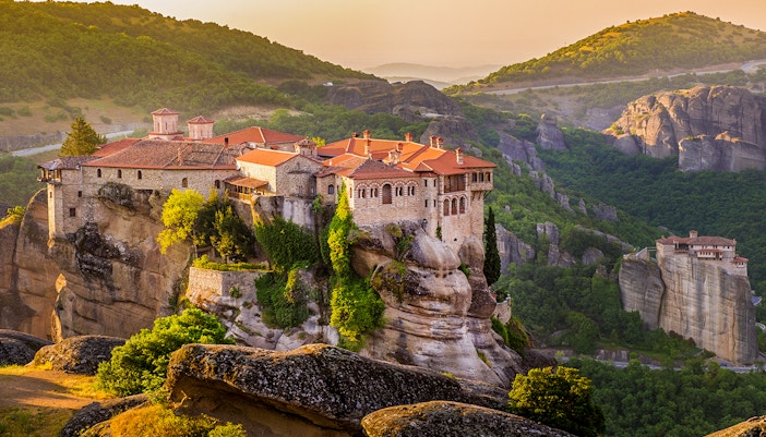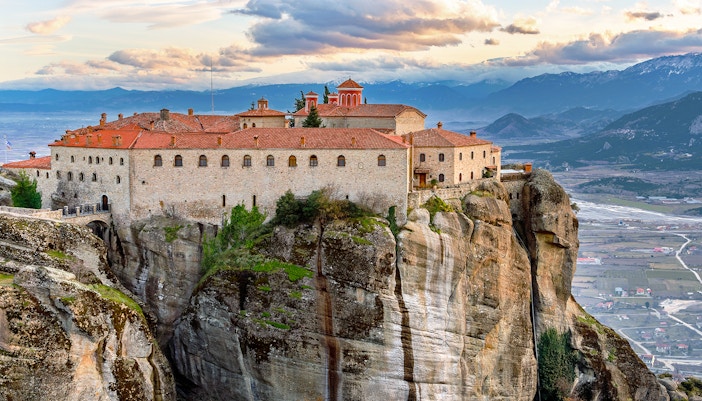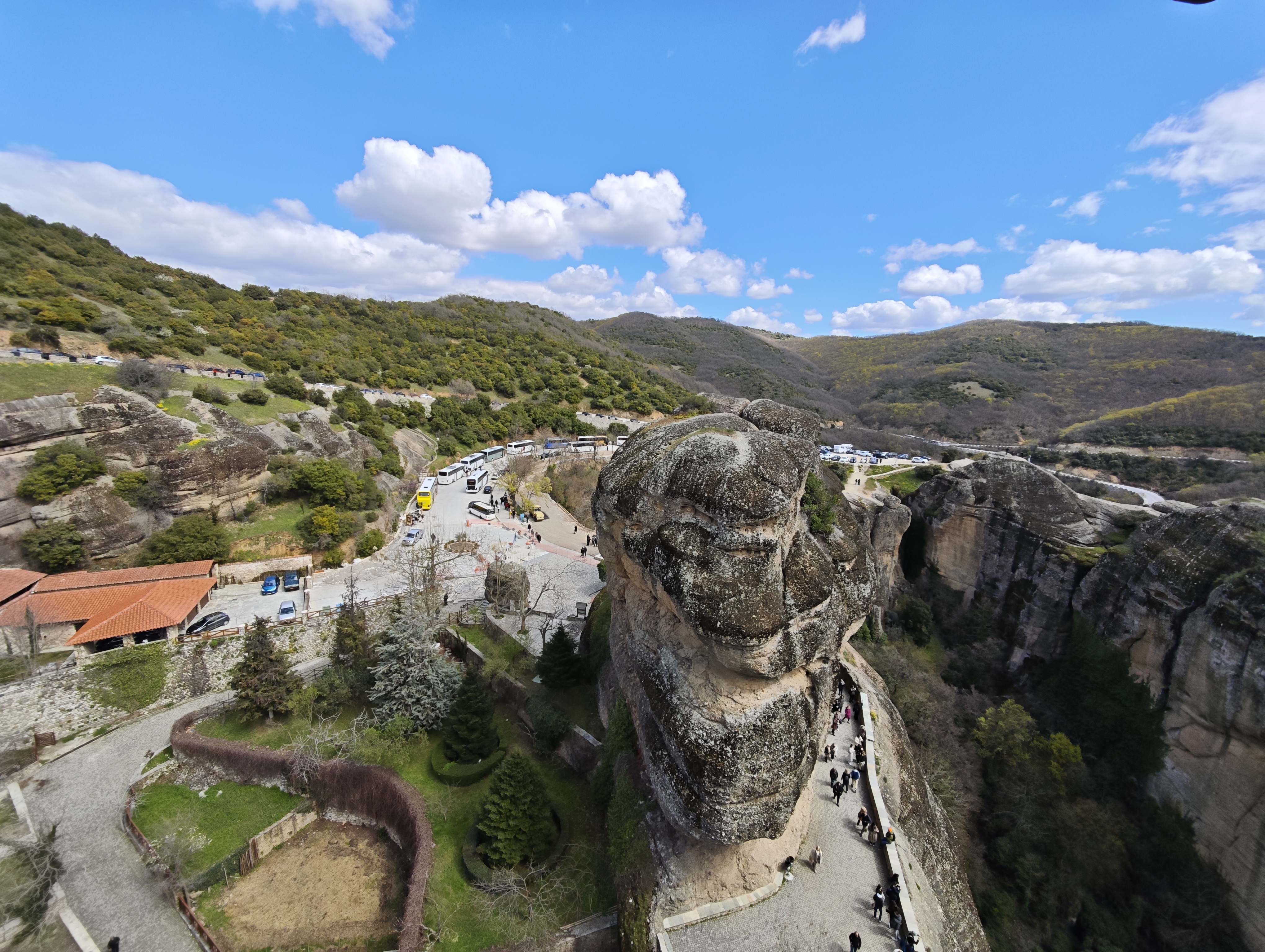 Great Meteoron, the largest and oldest monastery in Meteora, rises high above the valley like a fortress in the sky. Founded in the 14th century, it houses ancient manuscripts, religious artifacts, and incredible frescoes.