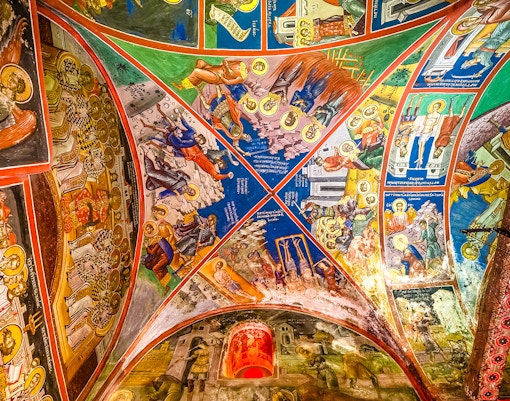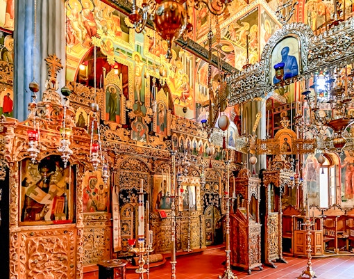 W samym sercu klasztoru znajduje się główny kościół ** , poświęcony świętemu Szczepanowi. Jego post-bizantyjska konstrukcja charakteryzuje się sklepionym sufitem, centralną kopułą i wnętrzem ozdobionym żywymi freskami i złoconymi ikonami przedstawiającymi sceny z Nowego Testamentu i życia św. Szczepana**.